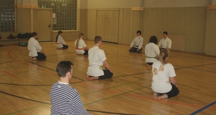 Das Training beginnt und endet mit einer kurzen Meditation, die helfen soll, den Geist zu leeren und den Alltag aus dem Dojo zu lassen, damit man mit voller Konzentration üben kann. Dabei kniet man sich nach vorgegebener Weise ab, richtet seinen Körper aus, beruhigt seinen Geist und beobachtet seine Atmung.